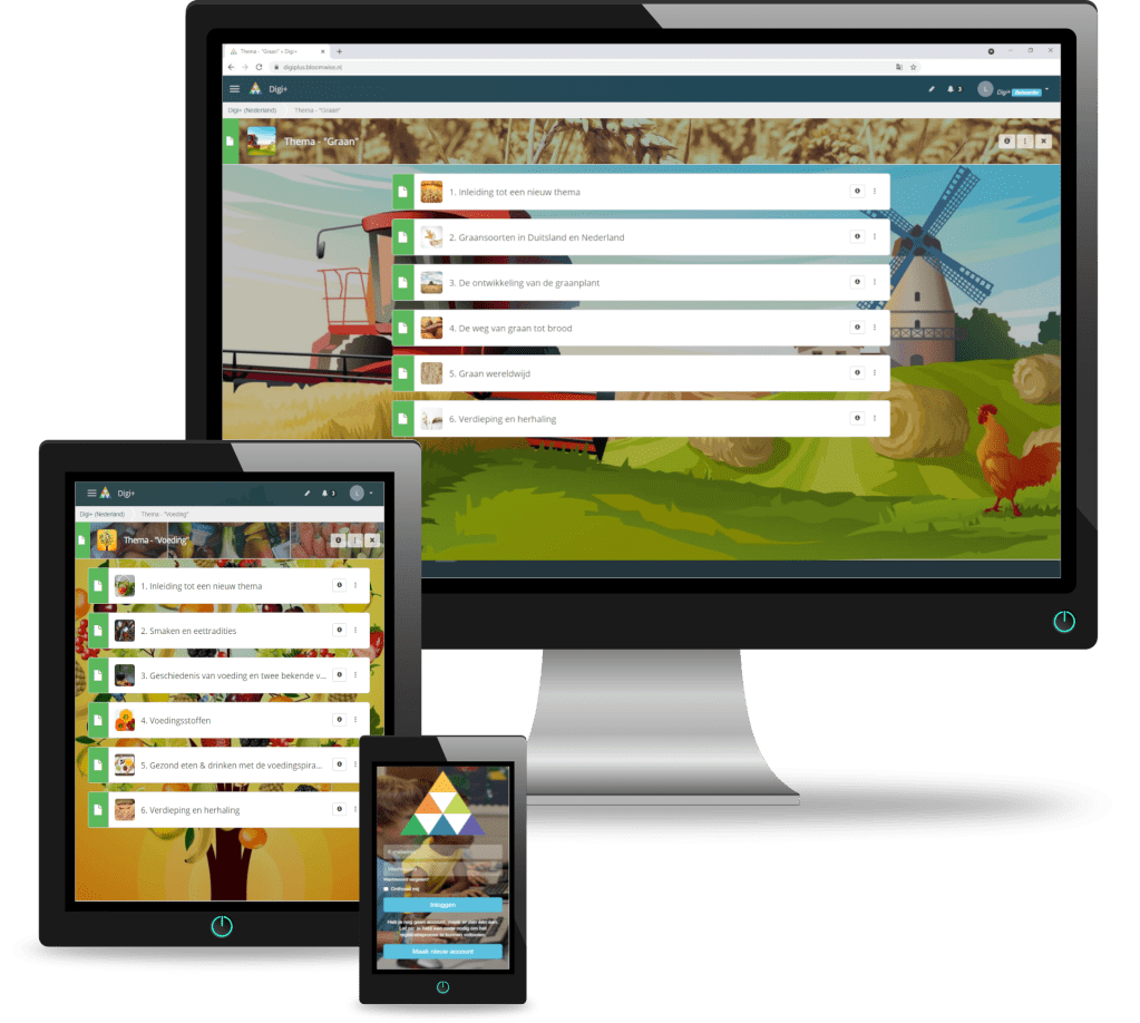 Digi+ is een digitale tweetalige leermethode Nederlands-Duits die aan beide kanten van de grens kan worden gebruikt. Met als huidige thema’s ‘Graan’ en ‘Voeding’, laat dit lesboekvervangende platform de leerlingen kennismaken met de Duitse taal en cultuur, terwijl ze inhoudelijke kennis over graan en voeding opdoen. De methode wordt ondersteund door de identificatiefiguurtjes Lieke & Max, die met anekdotes over taal- en cultuurverschillen de leerlingen door het materiaal begeleiden.